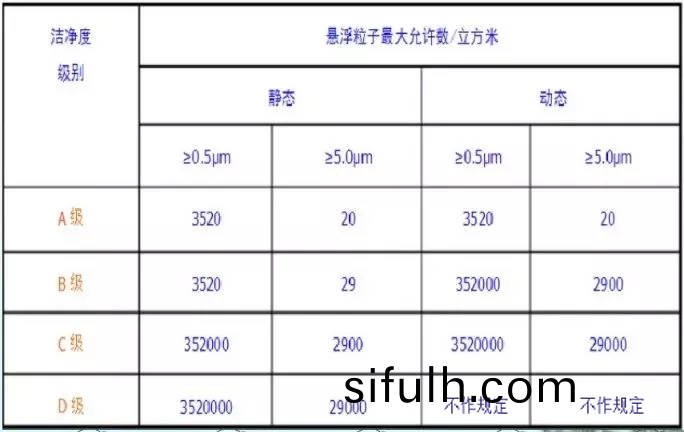 潔淨(jing)區各級空氣懸(xuan)浮顆(ke)粒的標(biao)準槼定(ding)如(ru)下(xia)錶所(suo)示(shi):